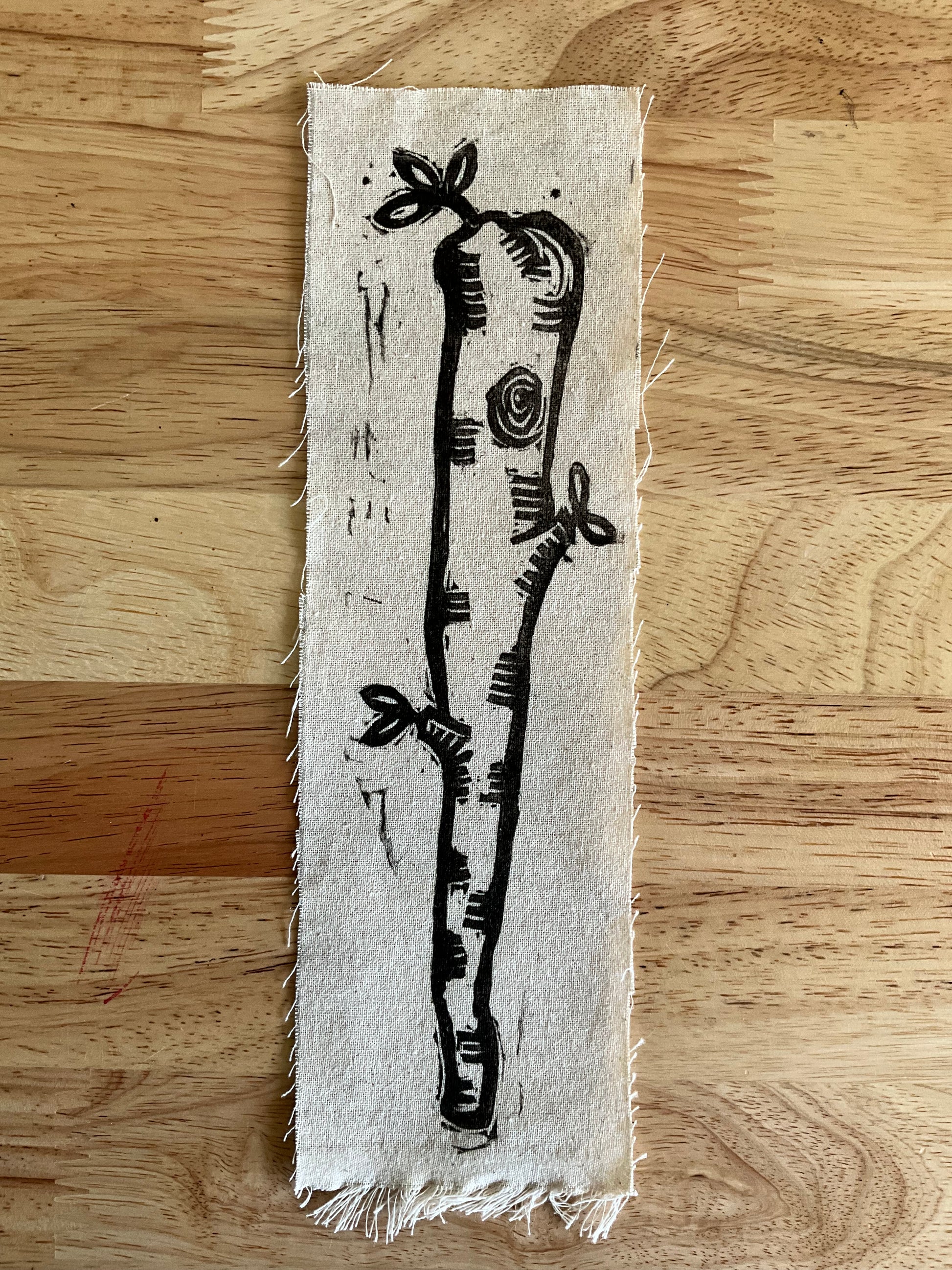Medium: relief print (oil based ink on muslin)